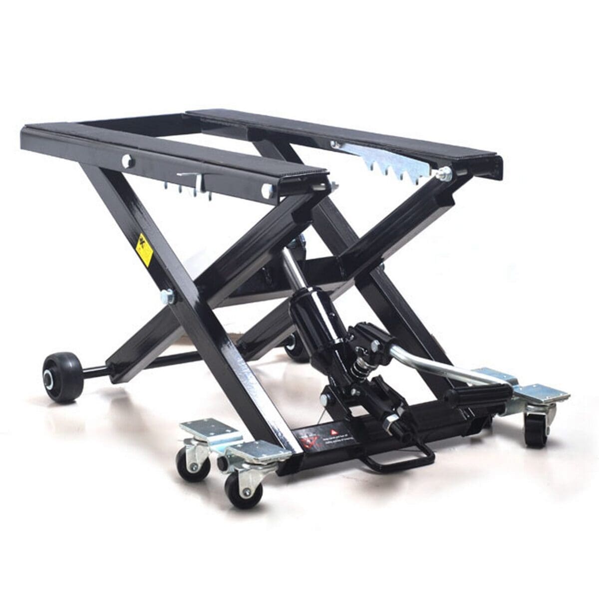 Built around a reinforced steel construction, the lift provides a stable, rubber-coated contact surface to prevent slipping and protect your machine while it’s raised. With a load capacity of 500kg, it’s suitable for a wide range of scooters and lightweight motorcycles.