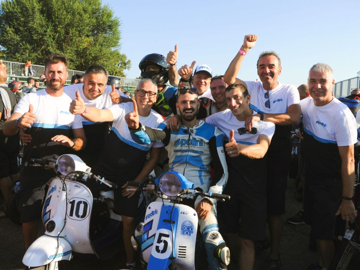 (Body) An unforgettable Saturday for the Polini Team, which, at the Pomposa 500, won the overall victory and in the group category at the end of a real marathon at full speed. After the extraordinary success of 2024, Polini once again leaves its signature on this prestigious event, now in its 7th season, reconfirming the timeless passion for the Vespa. A double victory that comes thanks to an impeccable team made up of Matteo Tiraferri, Filippo Benini and Manuel Fulgeri, who imposed themselves in a race conducted with precision, but above all with constancy.